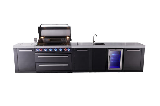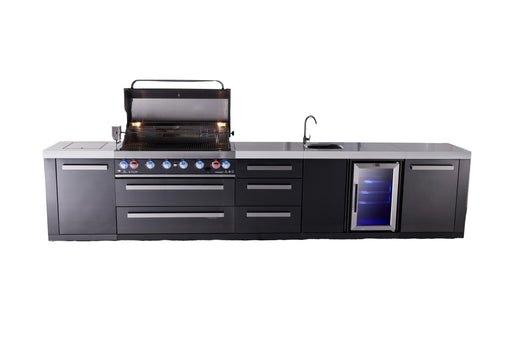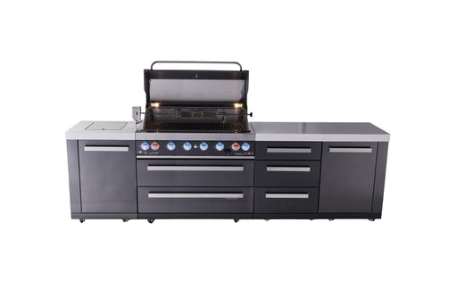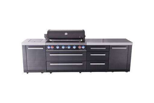 Mont Alpi 6-Burner Black Series Outdoor Kitchen Island With Extra Drawer Slides Cabinet Module