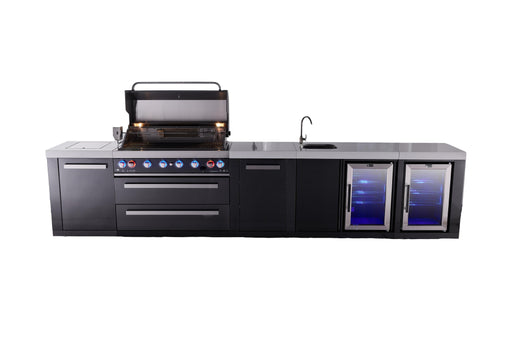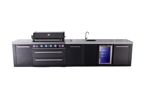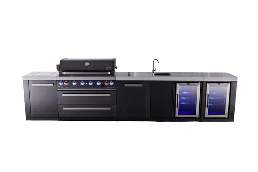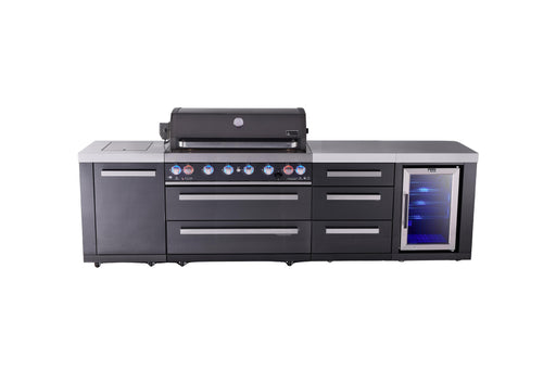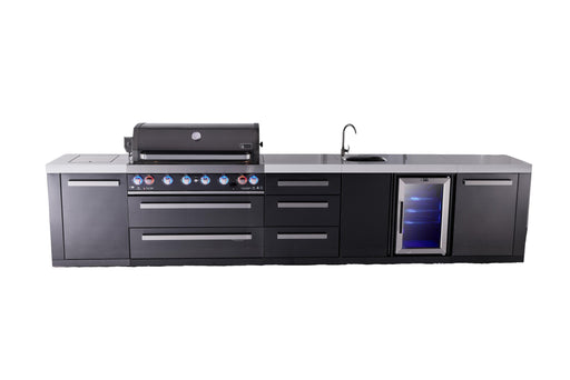 Mont Alpi 6-Burner Black Series Outdoor Kitchen Island With Beverage Center And Extra Storage Cabinet Module